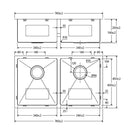 Fienza Hana Double Bowl Sink 27L-27L Rugged Brass Includes Sink Protect Top/Undermount 760X450X200mm