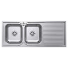 Fienza Tiva 1180 Kitchen Sink Double Bowl With Drainer Topmount 19L-19L 1TH 1180X480X180mm