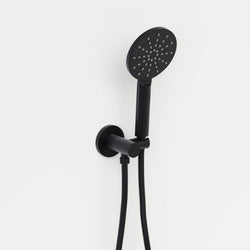 • Contemporary matte black handheld shower on adjustable bracket which pivots up and down making it suitable for use as a main shower