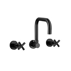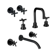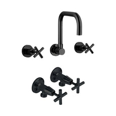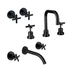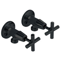 - Striking matte black 2-piece washing machine set with classic cross handles
