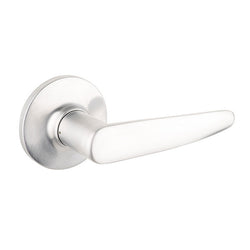 Lane Avalon Entrance Lever Set On Round Rosette is a stylish lever handle with a locking function for added security. This handle features a C4 5 pin cylinder lock. A cylinder lock, is a mechanism made up of a keyhole contained within a cylinder. It uses pins of varying length to prevent the lock from opening without the right key.
