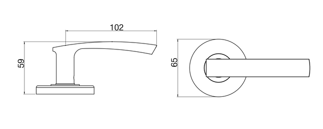 - A Non-handed Door handle, designed to rotate into the correct position for use on both left and right hand doors