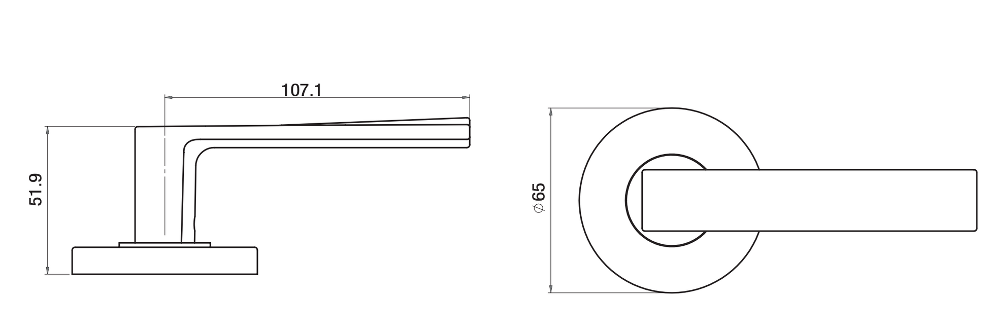 - A Non-handed Door handle, designed to rotate into the correct position for use on both left and right hand doors