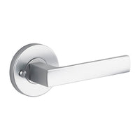 Lane Oxford Privacy Lever Door Handle Set On Round Rosette Brushed Satin Chrome