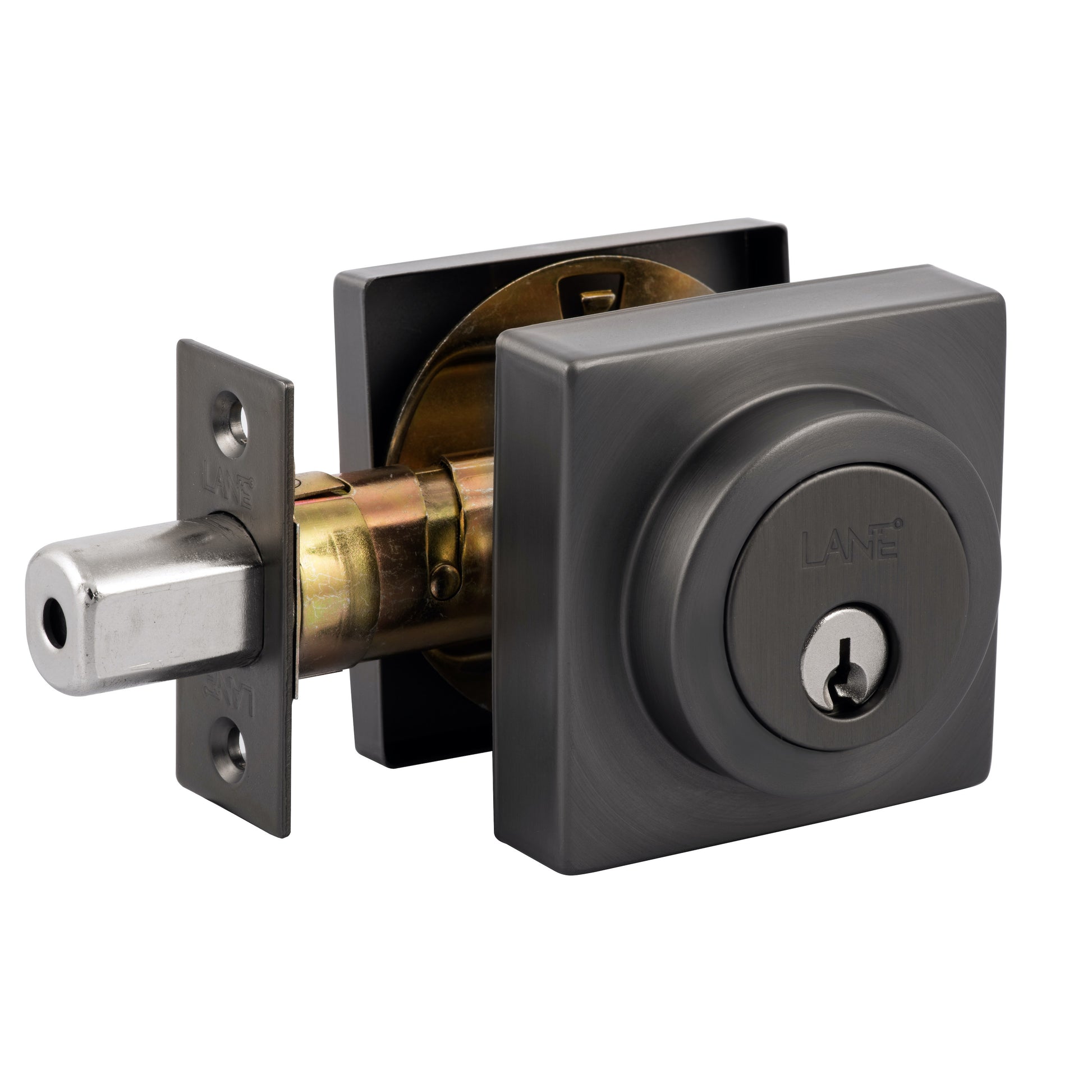 - Lane Slimline Single Cylinder Deadbolt Square Gun Metal Grey