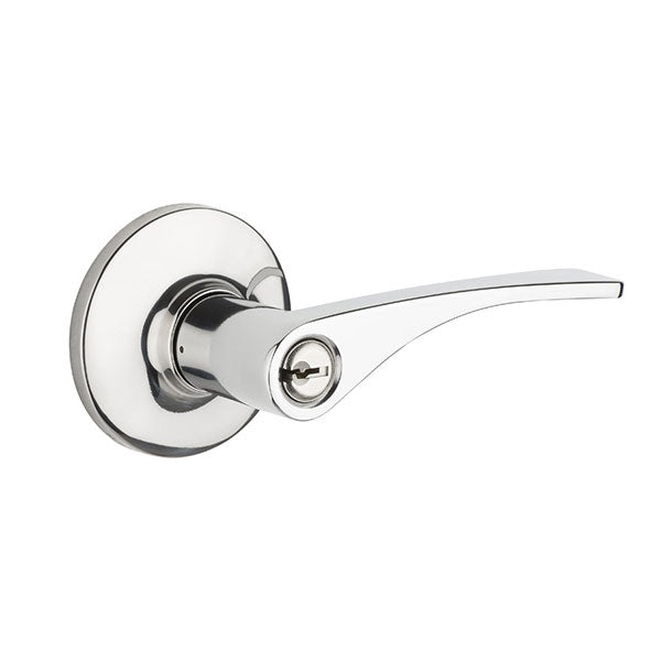 The Lane Victoria Entrance Lever Set On Round Rosette Polished Chrome is a stylish lever handle with a locking function for added security. This handle features a C4 5 pin cylinder lock. A cylinder lock, is a mechanism made up of a keyhole contained within a cylinder. It uses pins of varying length to prevent the lock from opening without the right key.