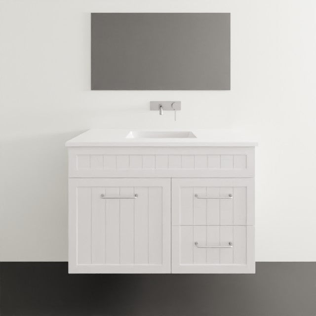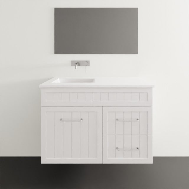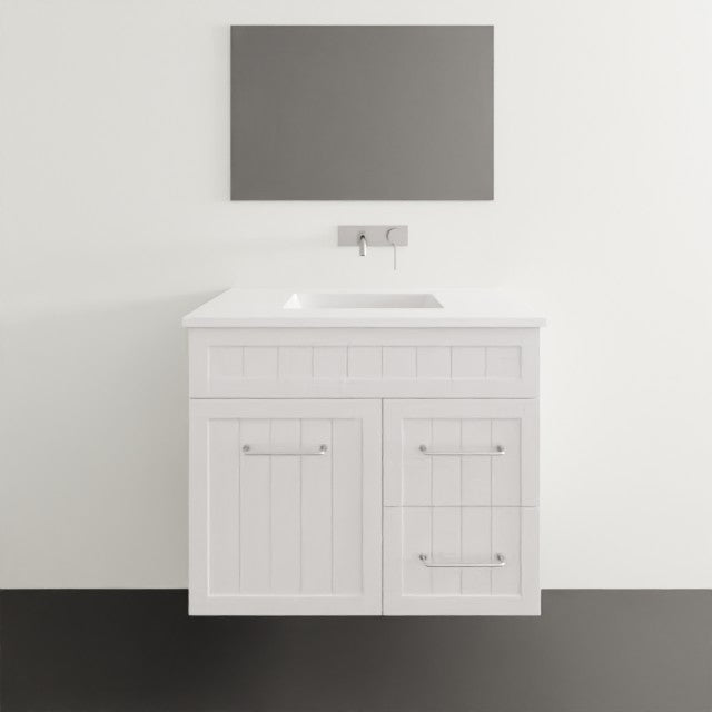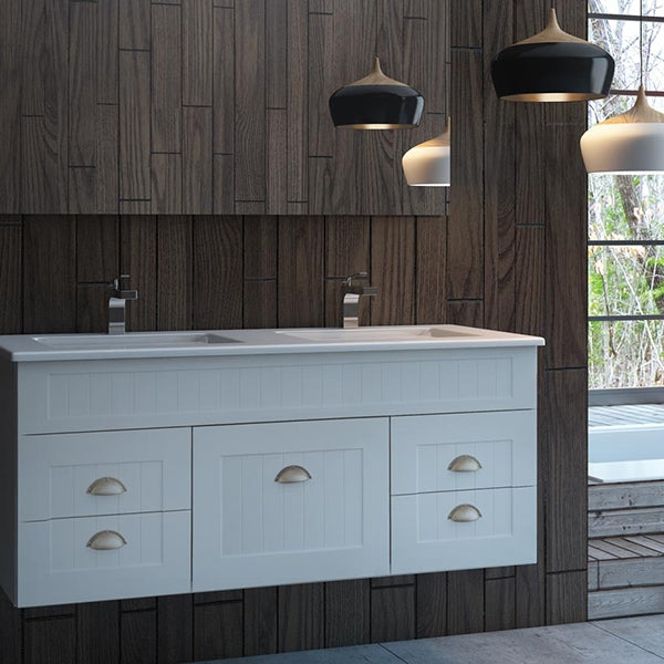 - Beautiful shaker style front with V groove offer a traditional alternative for French provincial bathrooms
