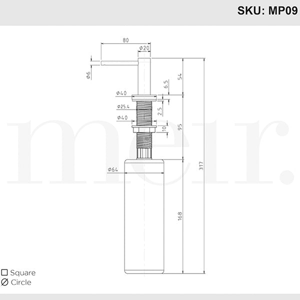 This round Brushed Nickel soap dispenser is the stylish yet practical addition to any sink or basin, perfectly complementing Meir's range of round mixers. Pair it with Meir Round Kitchen Mixers for a clean preparation station, or Meir Round Basin Mixers to put the final touches on a standout bathroom.