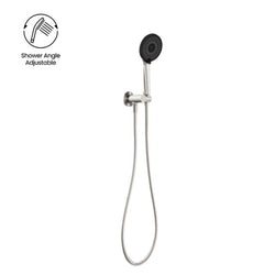- Gorgeous round design twin shower with luxury brushed nickel finish