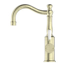Nero York Basin Mixer Hook Spout With White Porcelain Lever Aged Brass