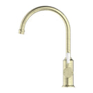 Upgrade your kitchen with the Nero York Kitchen Mixer. Made with an elegant Gooseneck Spout and a White Porcelain Lever in exquisite Aged Brass, this mixer is both functional and stylish. Enjoy precise control of water flow and temperature while adding a touch of luxury to your space.