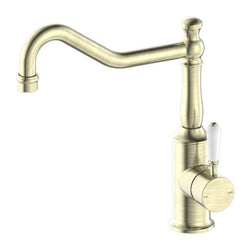 Nero York Kitchen Mixer Gooseneck Spout With White Porcelain Lever Chrome
