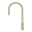 Nero York Pull Out Sink Mixer With Vegie Spray Function With White Porcelain Lever Aged Brass