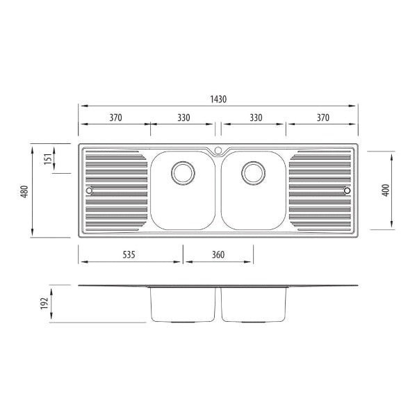 Oliveri Diaz double bowl topmount sink with dbl drainer