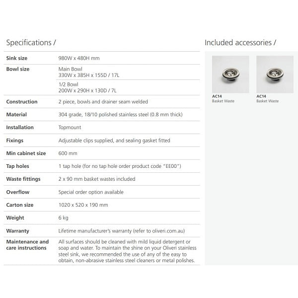 The Oliveri Endeavour range is one of the many ranges of stainless steel sinks that are produced out of their factory in Adelaide.