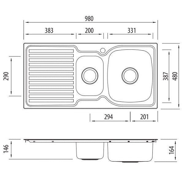 - Dimensions 980mm x 480mm x 164mm