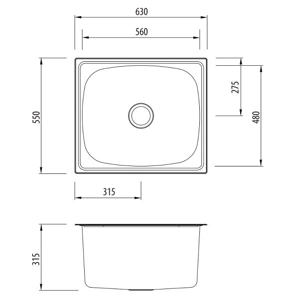 Oliveri Laundry 70L tub topmount L/H 1TH