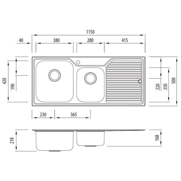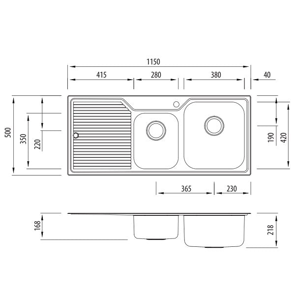 - Dimensions 1150mm x 500mm x 218mm