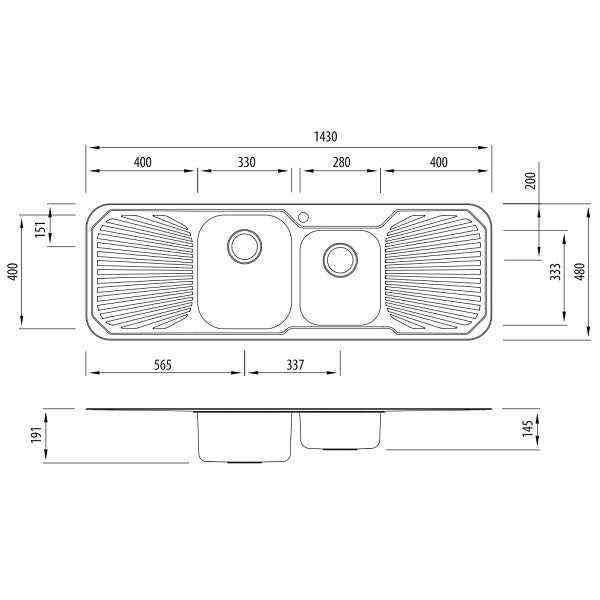 - Secondary Bowl size 280mm x 333mm