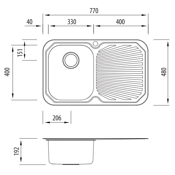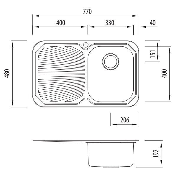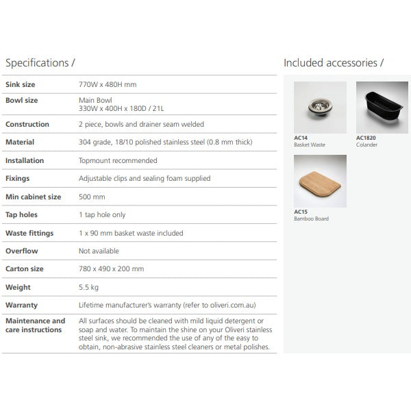 Oliveri Petite single bowl topmount sink drainer 1TH