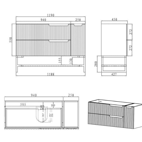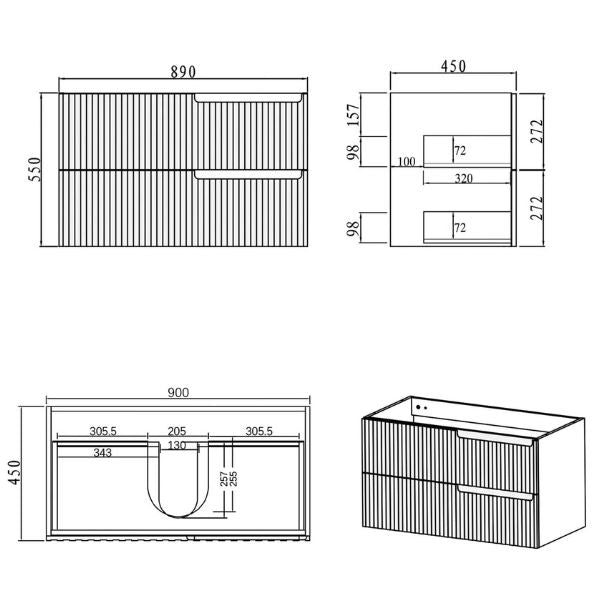 1 x Noosa Wave Board Wall Hung Vanity Cabinet for undermount basin