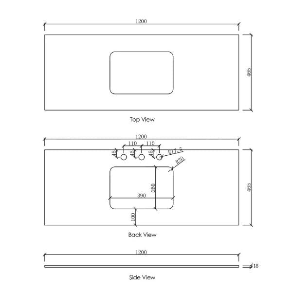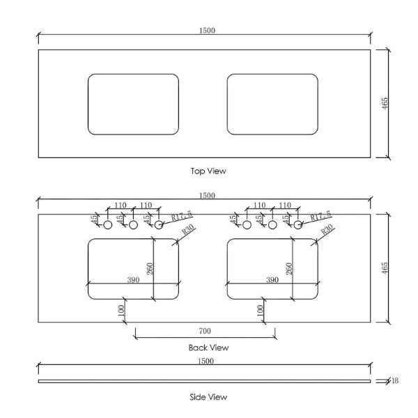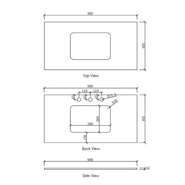 - Natural Carrara tops are only available with no tapholes, suitable for wall-mounted tapware