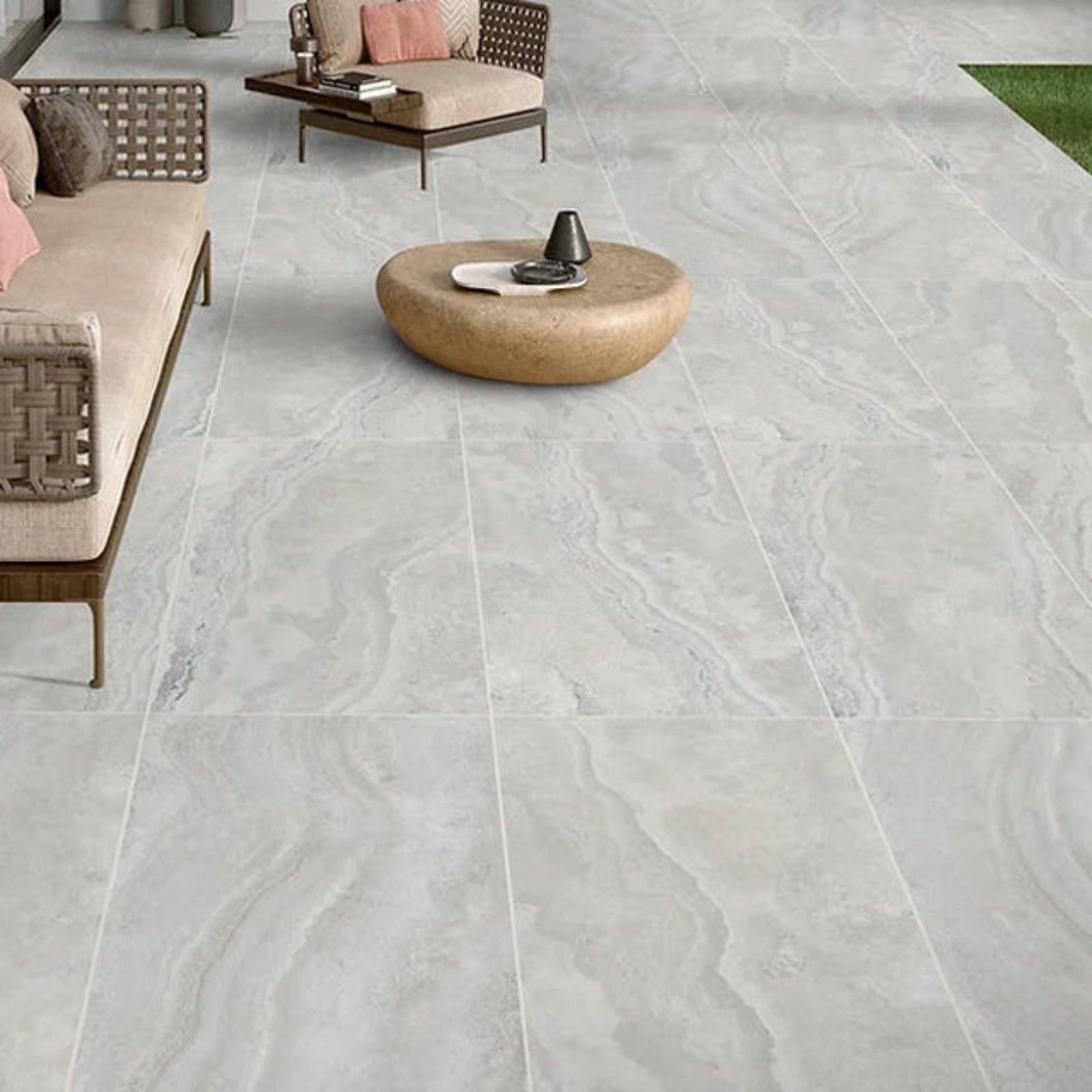 Double WIth Hand Pearl Ivy Vein Cut Travertine Look Tile Tech Grip 300 x 600 x 10mm Porcelain  - The Blue Space