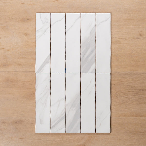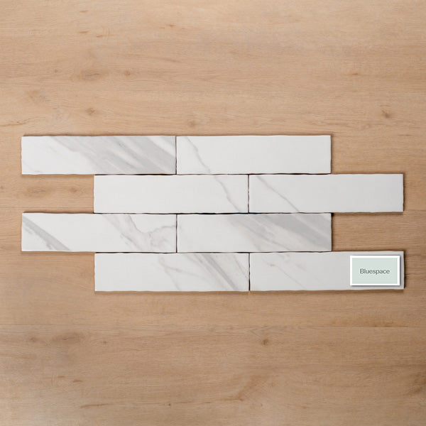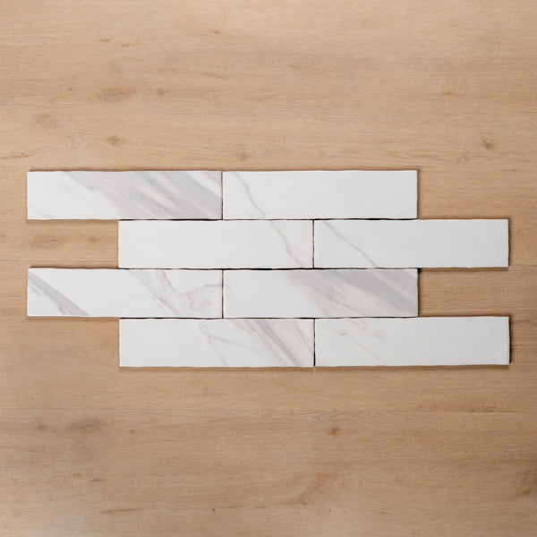 Perisher White Marble Gloss Cushioned Edge Ceramic Subway Tile 75x300mm