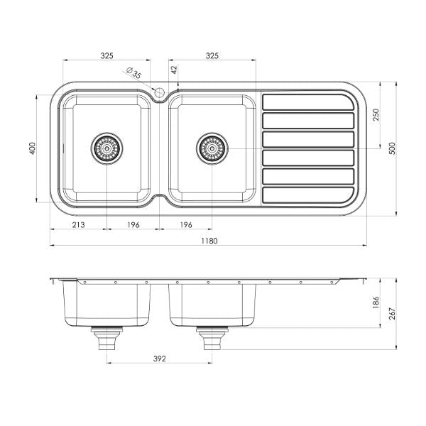 Phoenix 1000 Series Double Bowl Sink 1180 x 500mm