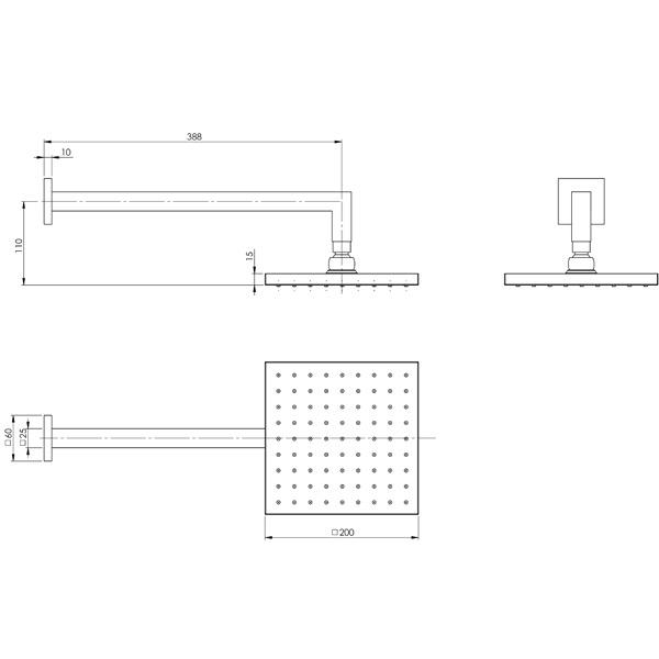 Phoenix Lexi Shower Arm 400mm & 200mm Square Rose