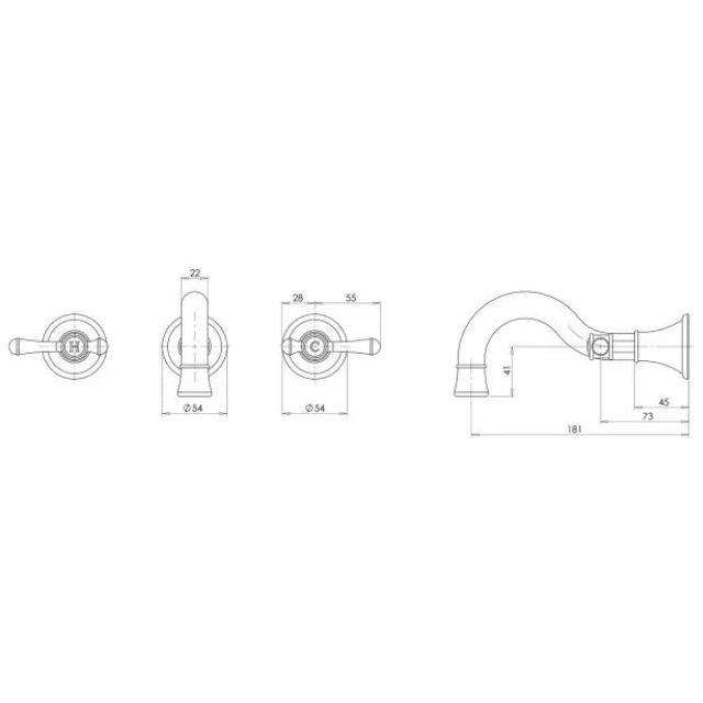 Phoenix Nostalgia Lever Basin/Bath Set 180mm Shepherds Crook Brushed Nickel