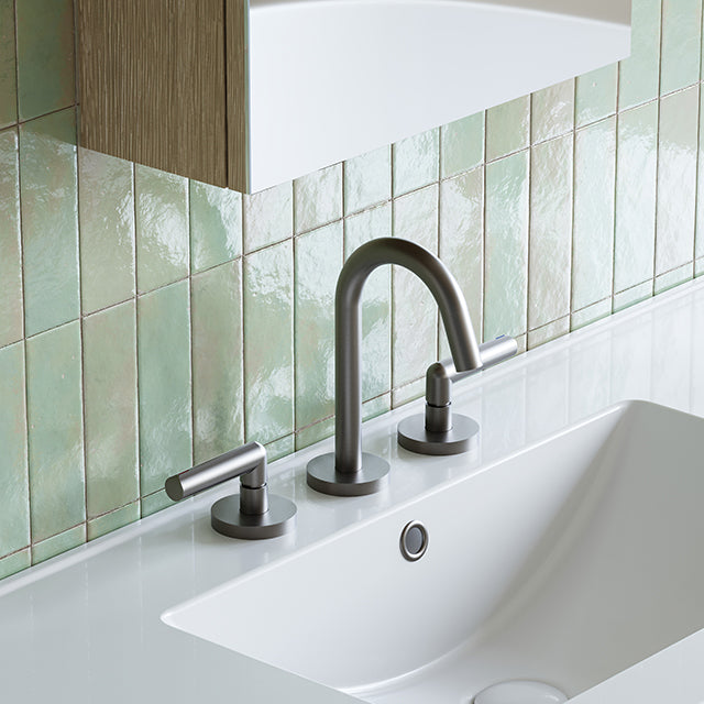Introducing the Phoenix Vivid Slimline Plus Lever Basin Set in Brushed Carbon. This sleek and modern basin set features a slimline design and stylish brushed carbon finish, bringing a touch of elegance to any bathroom. With easy-to-use lever handles, this set offers both functionality and sophistication. Upgrade your basin experience today.