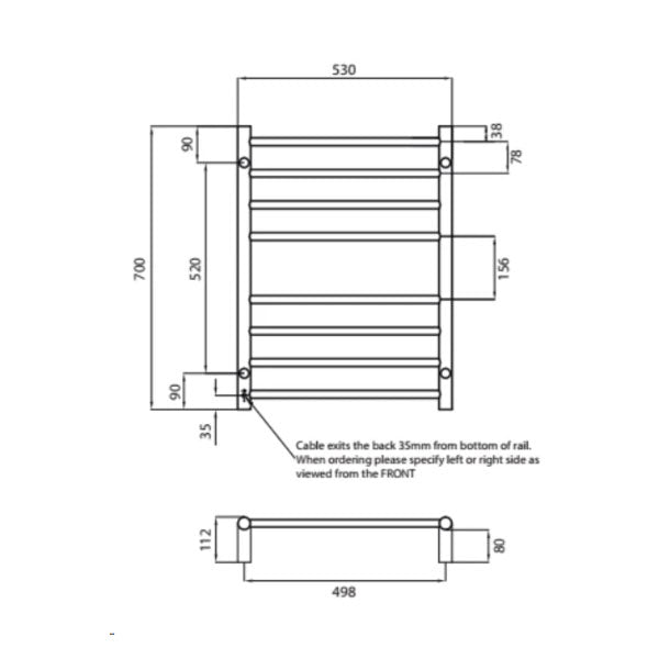 Radiant Round 8 Bar Heated Rail 530mmx700mm Matte Black