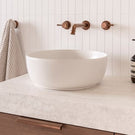 Expertly crafted in Italy, the Scarabeo Glam Round Basin is made of high-quality ceramic for a designer look and premium feel. Elevate your bathroom with this luxurious above counter basin in sleek gloss white.