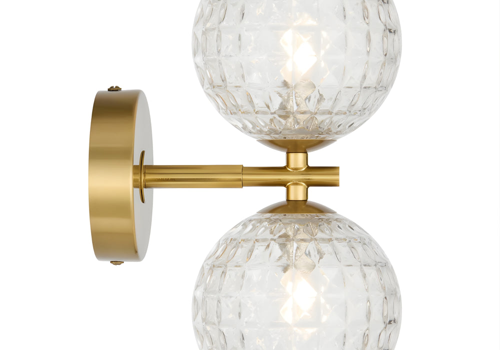 Telbix Felton 2 Light G9 Wall Light Antique Gold Clear Prism