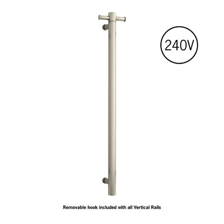 - Thermogroup Straight Round Vertical Single Bar Heated Towel Rail Brushed Nickel