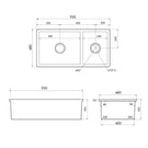 - Inner bowl dimensions: 400 x 440 x 232mm / 400 x 330 x 232mm