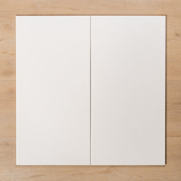 - Sleek white ceramic tile with a satin finish